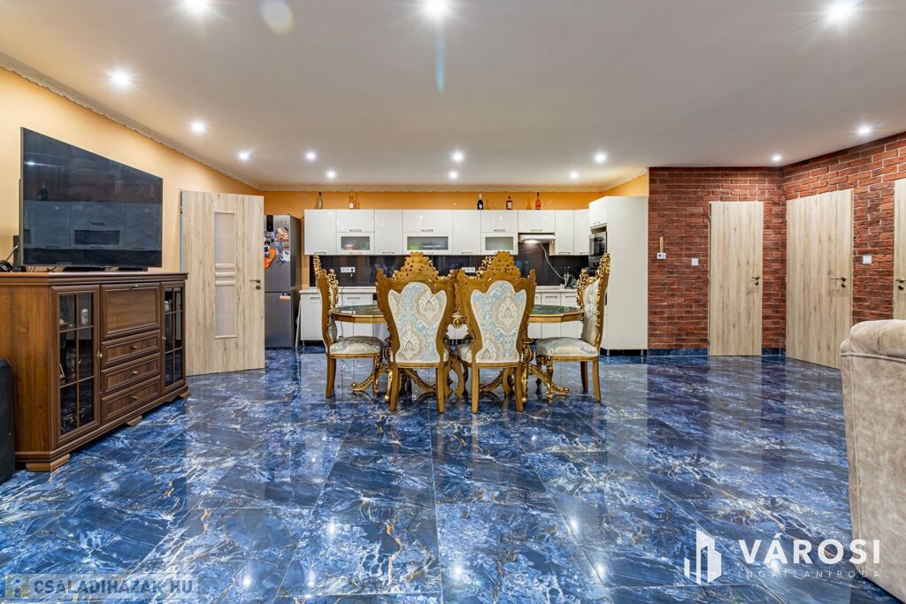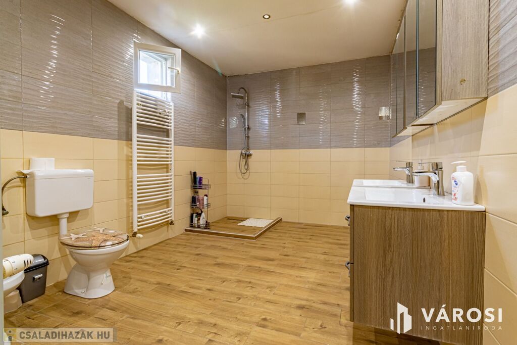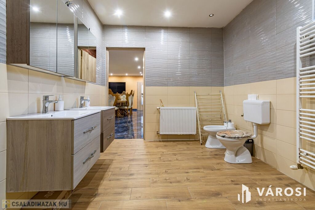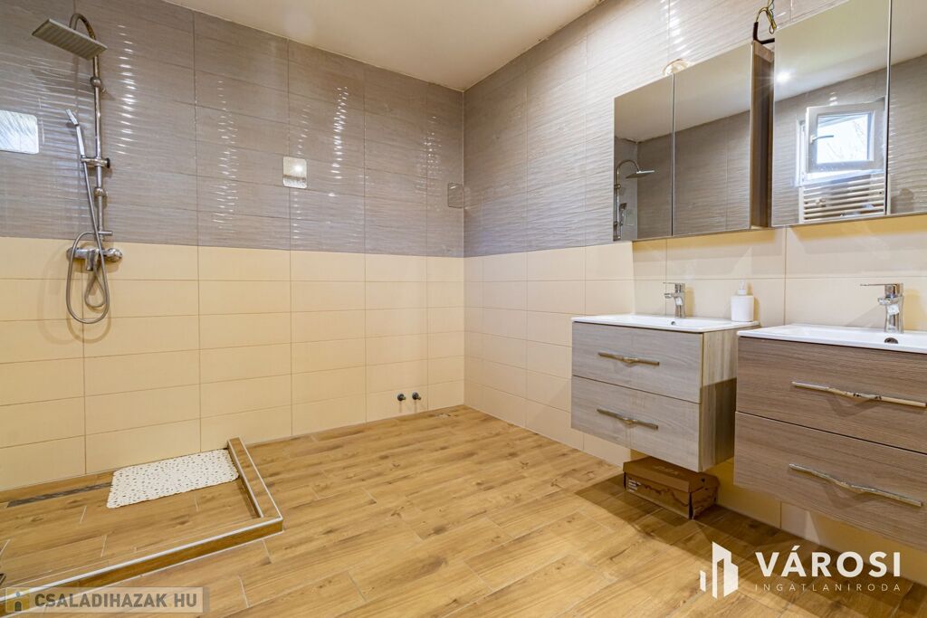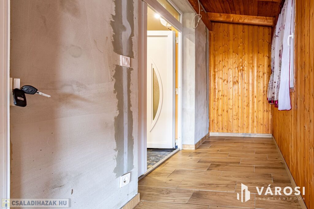 Teljesen új tetőszerkezet, bramac betoncserép héjazattal, teljes külső, padlófűtés alatti és lábazati szigeteléssel, a külső színezés még hátravan.