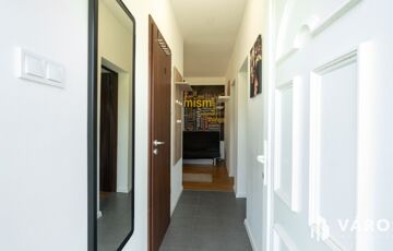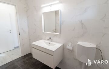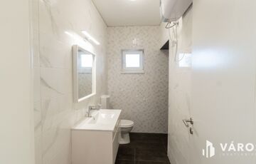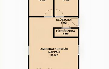 Az ingatlan elrendezése praktikus és kényelmes. A házba belépve az előszobába érkezünk, jobbról helyezkedik el 2 db 12 m2-es szoba, balról pedig egy fürdőszoba ( tusoló+wc ) valamint a tágas amerikai konyhás nappali, ahonnan kijárásunk van egy nagy 20 m2-es teraszra. A fürdőszobában kapott helyet egy 120 literes Ariston WiFi-s vízmelegítő. A ház amerikai konyhás, mely modern és praktikus megoldást nyújt a mindennapi főzéshez.