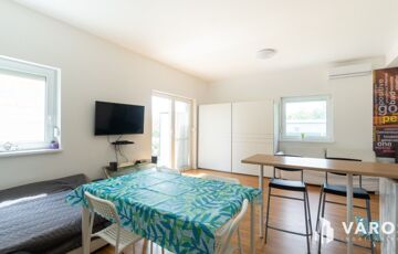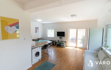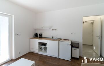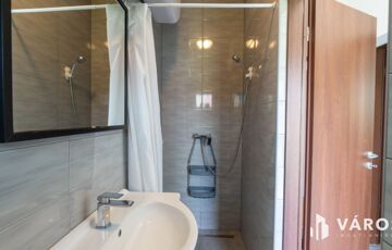 A hátsó "B" épület 2024-ben készült el. Összesen bruttó 104 m2-el rendelkezik melybe beletartozik egy 20 m2-es fedett terasz. 2 szintes épületként került kialakításra. A földszinten egy amerikai konyhás nappali és egy fürdőszoba található wc-vel. Az emeleten egy nappali, két hálószoba, valamint egy fürdőszoba wc-vel. A redőnyözött nyílászáróknak köszönhetően a napfény behatolása a lakásba szabályozható, így a főszezonban sem kell félni a túlzott hőingadozástól. A mindkét szinten megtalálható klímák és a külső hőszigetelés a maximális komfortot garantálja, így a modern kényelem egyik alapfeltétele sem marad el. A ház alacsony fenntartási költségekkel bír, így gazdaságos választás lehet az új tulajdonosnak.