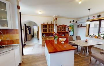 Az ingatlanban a burkolatok kerámia lap és laminált padló, melyek újszerű állapotban vannak. Meg kell jegyeznem, hogy a házban a színek, a berendezési tárgyak harmonizálnak egymással.