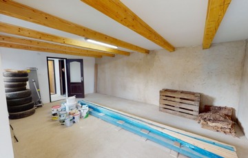 A telek teljesen körbe van kerítve, gyönyörű szép széles a bejárat. Az fő épületnek 3 bejárata van. A ház folytatásaként 4-5 apartman rész kialakítás alatt van, ez a rész igény szerint bármire használható. Ezzel az épületrésszel szemben egy másik házrész került kialakításra, itt is csak a fantázia szab határt arra hogy mire használjuk, rendkívül jó adottságai vannak. Itt került megépítésre egy fantasztikus kemence, de térjünk vissza a főépületre.