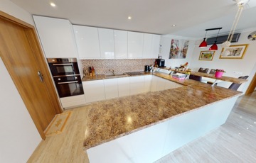 2 szinten: 4 hálószoba, 2 konyha, nappali, fürdőszoba, WC, beépített gardróbok, kamra