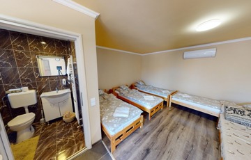 175 m²-es különálló épület: 3 hálószoba, konyha, minden szobához saját fürdőszoba