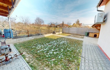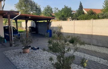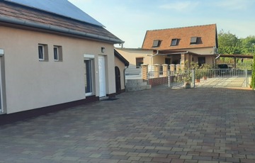Térkövezett udvar, gyümölcsöskert nyári pihenéshez