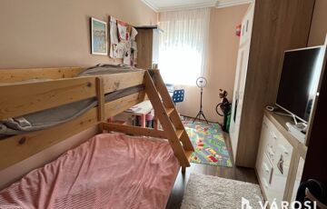 - Alsó szint: 80 m2-es lakás, amely nappali-étkező-konyhából, 2 hálószobából, fürdőszobából és külön WC-ből áll.