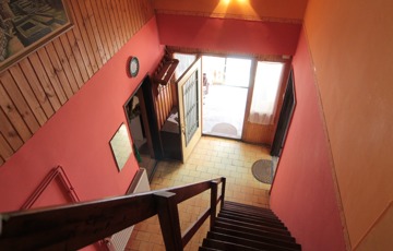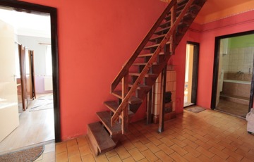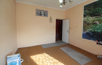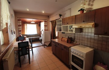 A déli fekvésű télikert üvegezett ajtajai és ablakai növelik a benti hőérzetet. Innen egy tágas közlekedőbe léphetünk, ahol DNY irányba két nagyméretű szoba, szemben a fürdő és a stabil emeleti lépcső található. Keletre (jobbra) egy nagyméretű konyha, kamra és a házzal kapcsolatos kazánház helyezkedik el. A nappali egy kis része alápincézett.