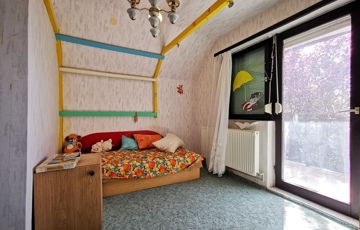 Az ingatlan nyugodt, forgalomtól mentes utcában található, miközben a település központja, boltok, óvoda, iskola és buszmegálló néhány perces távolságban elérhető.