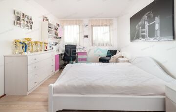 A ház modern, amerikai konyhás nappalival, dolgozó sarokkal, valamint egy részben fedett, 55 m²-es terasszal büszkélkedik, ahonnan csodás kilátás nyílik a gondosan parkosított kertre. A földszinten található szülői hálószoba saját fürdőszobával és járható gardróbbal, míg az emeleten három tágas szoba, külön fürdőszobával rendelkezik, garantálva az intimitást és kényelmet.