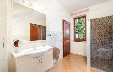 Das Haus verfügt über ein modernes Wohnzimmer mit amerikanischer Küche und Arbeitsbereich sowie eine teilweise überdachte Terrasse von 55 m², von der aus man einen herrlichen Blick auf den sorgfältig angelegten Garten hat. Im Erdgeschoss befindet sich das Elternschlafzimmer mit eigenem Bad und begehbarem Kleiderschrank, während im Obergeschoss drei geräumige Zimmer mit separaten Bädern die Privatsphäre und den Komfort gewährleisten.