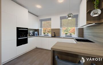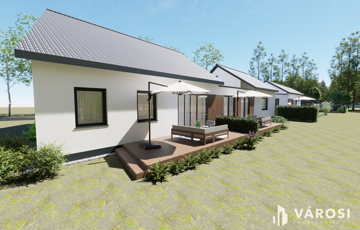 Eladó Hódmezővásárhelyen, Új-kishomokon a Mező utcában, új építésű 3 lakásos sorházban, 110,67 m2 hasznos alapterületű tégla ház. Az amerikai konyhás, nappali + 3 hálószobás ház remek tájolású, kényelmes életteret biztosít 4-5 fős család számára. Az ingatlanhoz ~ 420 m2 önálló kertrész tartozik, valamint társasház részére tervezett közös (6,00m x 3,00m) medence és napozótér.