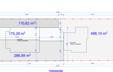 A telek mérete 287 m², amely saját kertrészt és teraszt tartalmaz, ideális helyszínt biztosítva a szabadtéri programokhoz.