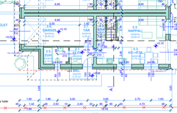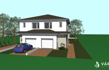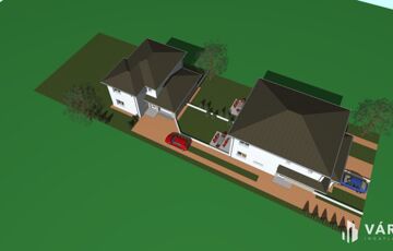 A garázs előtt 5 m előkert került kialakításra, így igény esetén egy további autó felszíni beállása biztosított.
