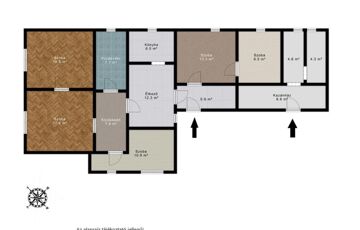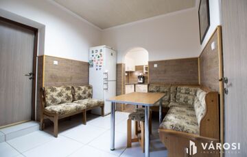 Hasznos alapterülete 138 m², amely a következő helyiségekből áll: 3+2 szoba, folyosó, konyha (felújított konyhabútorral), külön étkező, fürdőszoba WC-vel, kazánház, kamra, tároló.