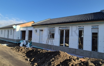 Az első, utcafronti ingatlan 104,9 millió forintos áron elérhető. A nettó lakótér 79,51 négyzetméter, amelyhez egy 17,67 négyzetméteres garázs, valamint egy 4,8 négyzetméteres terasz kapcsolódik. A 278 négyzetméteres telken épült házban két hálószoba és egy világos, tágas nappali található, a fürdőszoba és a WC külön helyiségben kapott helyet. A modern, energiatakarékos hőszivattyús fűtés padlófűtéssel kombinálva biztosítja az otthon melegét. A tetőtér nem beépíthető, így a földszintes kialakítás egyszerű, akadálymentes életteret kínál. A riasztórendszer kiépítéséhez minden előkészület megtörtént, a parkolás pedig az utcán ingyenesen megoldható.