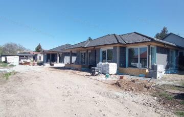 <p><strong>CasaNetWork Ingatlaniroda Gödöllő Ingatlaniroda kínálatában eladó ikerház Gödöllő Kertvárosban, központhoz közel</strong></p><p>Gödöllő legkeresettebb, belvárosi utcájában, mindenhez lépésnyi közelségben eladó egy tökéletes elosztású, új építésű otthon! Már csak az utcafronti fél szabad, le ne maradjon róla!</p><p>Ez az ingatlan Gödöllő szívében, a leginkább keresett utcában található, ahol a csendes, kulturált környezet találkozik a belváros minden kényelmével. A HÉV, vonat és buszmegállók, a központ, az intézmények, a bevásárlási lehetőségek és a rendelőintézet is csupán egy karnyújtásnyira vannak, így az autóhasználat minimalizálható.</p><p>Az ingatlan kialakítása során a kényelem és a praktikum volt a fő szempont. Az elrendezés tökéletesen alkalmazkodik a modern családok igényeihez:<br /></p><ul><li>Három hálószoba biztosítja a privát szférát és a kényelmet</li><li>A külön háztartási helyiség a mindennapi életet könnyíti meg</li><li>A nagyméretű terasz a szabadidő kellemes eltöltésére nyújt lehetőséget, a pici kert pedig ideális a kikapcsolódásra és a zöld környezet élvezetére</li></ul><p>Műszaki adatok:</p><p></p><ul><li>- 30-as PTH tégla falazat + 10cm grafit szigetelés, </li><li>- 10cm válaszfalak, glettelve, fehér színűre festve, </li><li>- lábazaton zsalukő, szigetelve, vakolva, </li><li>- 5 légkamrás műanyag nyílászárók 3 rétegű üvegezéssel, középszürke színben,</li><li>- monolit vasbetonfödém, </li><li>- Antracit cserépfedés,</li><li>- középszürke színű ereszcsatorna, </li><li>- Atlantic loria hőszivattyú beépített melegvíz tárolóval, minden helyiségben padlófűtés, fürdőben törülközőszárítós radiátor, </li><li>- riasztó, klíma előkészítés</li><li>- redőnyszekrény elektromos kiállással motor és vezérlés számára</li></ul><br /><p>Ár tartalmazza:</p><p></p><ul><li>- beltéri ajtókat 60.000.-Ft/db,</li><li>- hideg- és melegburkolatokat 5.000.-Ft/nm,</li><li>- teraszburkolatot 6.500.-Ft/nm,</li><li>- mosdókat 20.000.-Ft/db,</li><li>- csaptelepeket 15.000.-Ft/db, </li><li>- beépített Geberit Wc kagylókat 20.000.-Ft/db,</li></ul><p>A burkolatok és a szaniterek a vevő igényei szerint még szabadon választhatók!</p><p>A házhoz udvari kocsibeálló tartozik. Az ikrek praktikus nyári konyhával vannak összeköttetésben.</p><p>Az ingatlant egy megbízható kivitelező építi, aki számos referenciával rendelkezik, garantálva a magas minőséget és a gondos munkát. Az építési munkák a tervnek megfelelően haladnak.</p><p>Várható kulcsrakész átadás: 2026 1. féléve</p><p>Ez a családi ház ideális választás mindazok számára, akik egy csendes, modern otthonra vágynak, de nem szeretnének lemondani a belváros közelségének előnyeiről. Ha szeretne élni ezzel a lehetőséggel, keressen fel minket még ma! Ingyenes hitel tanácsadással, ügyvédi kapcsolattal és rugalmas időbeosztással állunk kedves ügyfeleink rendelkezésére! CASANETWORK - Ingatlanban otthon vagyunk</p>