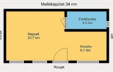 A főépület saját igények szerint alakítható. Redőnnyel felszerelt, fa típusú ablakok vannak beépítve. A szobákban fa parketta és laminált padló a többi helyiségben járólap található. A fűtésről gázkazán, a melegvíz ellátásról villanybojler gondoskodik.