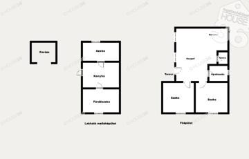 Főépületben nappali plusz 2 nagy szoba található, a lakható melléképületben egy szoba, konyha, fürdőszoba került kialakításra.