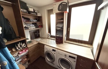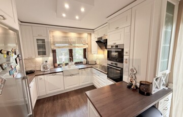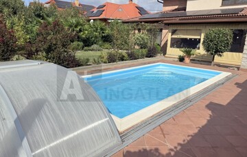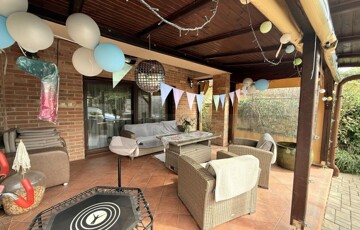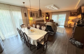 A két szintes, 198 m2-es ház + közvetlen a nappalihoz kapcsolódó, 20 m2 téliesíthető terasz és a kert végében megépített, szintén teljesen felszerelt, téliesíthető, grill terasz , fürdőszobával, wc-vel: