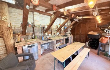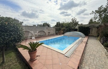 A mediterrán otthonokban,ház minden szegletéből árad a nyugalom , otthonosság, a pozitív energiát hirdeti, ahol a mindennapok élvezete hangsúlyos.A csodálatos növényekkel , pálmafákkal, kialakított kert,vízfogatóval és ellenáramoltatóval felszerelt medencével és a családi , baráti rendezvényeknek kialakított , rusztikus grill terasz ,amely szintén téliesíthető , saját tusolós fürdőszobával .