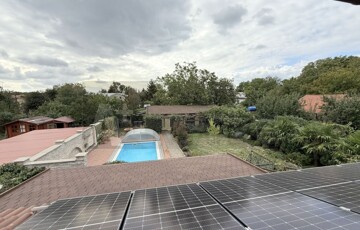 -napelem 11kw , hőszivattyú , padló fűtés , mennyezet hűtés , termosztát helyiségenként, központi szellőztető, központi porszívó , riasztó rendszer , 6 kamerás ,