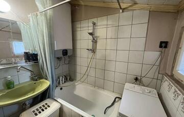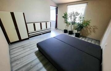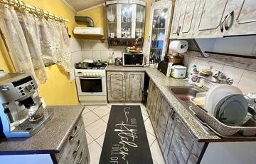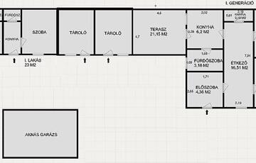 A 80 m2-es első generációs egységben 6 éve műanyagra cserélték a nyílászárókat, leszigetelték, újra parkettáztak, valamint a villanyhálózat részleges cseréje is megtörtént. A fűtést elektromos panelek és fa tüzeléses kandalló biztosítja, a melegvizet 120 literes villanybojler. A hálószobában az idei évben további 4 évre szóló garanciával rendelkező hűtő-fűtő klíma lett beszerelve. A ház előszobából, konyhából, étkezőből, kamrából, ülőkádas fürdőből és 2 szobából áll és egy 22 m2 fedett terasz tartozik hozzá.