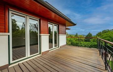 Az emeleti szinten több hálószoba, gardróbok, tágas fürdők és részleges panorámás terasz teszik teljessé az életteret.