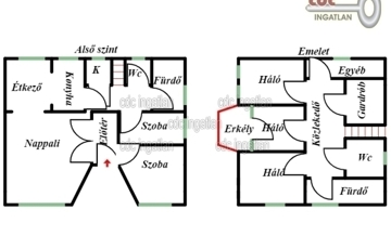 Az emeleten 3 háló, fürdő+wc, gardrób és dolgozó szoba.
