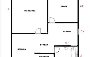 Helyiségei: Előszoba, konyha, étkező, nappali, fürdőszoba, 2 külön nyíló szoba.