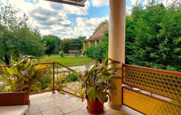 - a 2923 nm- es, körbekerített, dísznövényekkel (pl.: babérmeggy, leylandi ciprus) és termő gyümölcsfákkal és cserjékkel (alma, őszibarack, sárgabarack, cseresznye, birsalma, dió + mogyoró és füge) tarkított, körbekerített telken egy folyamatosan karbantartott otthonos lakóház, egy jó állapotú, hangulatos, tornácos "parasztház" és egy sokrétű felhasználásra alkalmas hatalmas melléképület található