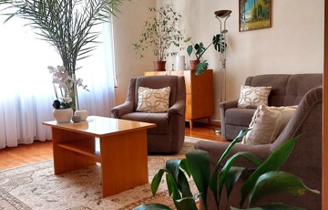 - a ház "központi része" a nyugalmat sugalló nappali, ahonnan a 3 külön bejáratú szoba, az előszoba és a fürdőszoba egyaránt megközelíthető