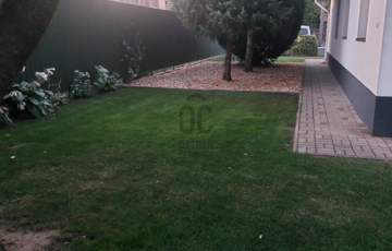 A telken 2 fúrt kút van, öntözőrendszer és csapdékvíz -tároló is megtalálható, így a kert gondozása egyszerű és takarékos.