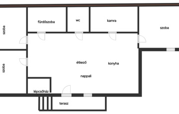 Földszinten: 3 szoba, nappali-konyha-étkező, kamra, fürdőszoba, wc