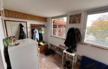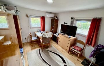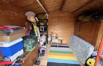 Teljesen elkülönítve található egy vendégház, mely 2021-ben épült-könnyűszerkezetes, de szigetelt. Jelenleg is lakott,így akár állandó lakhatásra, akár vállalkozás számára is kíváló lehetőséget nyújt, de a Balaton mellett szállásként is tökéletesen tud funkcionálni. A házba belépve egy kis előtér található, majd a konyha étkezővel és egy szép világos szoba, mely nappaliként és hálóként is funkcionál. A házban egy fürdőszoba is található, melyben zuhany lett kialakítva. A vendégházban a meleget hűtő-fűtő klíma biztosítja.