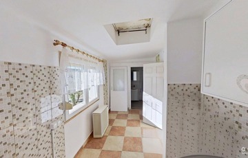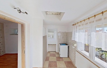 A ház jelenlegi beosztása változtatható, a leendő tulajdonos teljesen újragondolhatja a szobák funkcióit, a konyha és a fürdőszoba helyét.