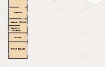 Nappali, három szoba, konyha, fürdő+wc, háztartási helyiség és szauna