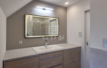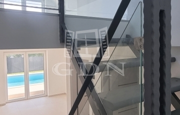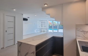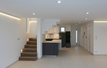 Ez az otthon nem csupán egy ingatlan — életstílus. A belső terek modern, prémium anyagokból készültek: olasz 60×120 cm padlólapok, Venato Bianco slimline munkalap, szálcsiszolt rozsdamentes acél élvédők és biztonsági üvegkorlátok. A fürdőszobák okostükörrel, digitális hőmérséklet-kijelzős csaptelepekkel és padlófűtéssel felszereltek. A villa minden tekintetben a legmagasabb igényeket is kielégíti.