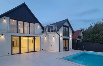 Van egy hely, ahol a csend nem üresség, hanem nyugalom. Ez a 2024-ben teljeskörűen felújított, kétszintes luxusvilla a modern eleganciát és a természet közelségét egyesíti — medence, panoráma, prémium kivitelezés, a legmagasabb elvárásoknak is megfelelő kivitel, mindössze pár perc séta a Balatonhoz.