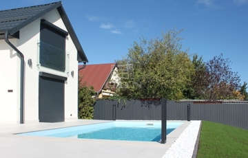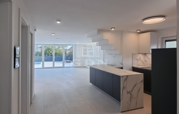 A kültér déli fekvésű: a medence és a terasz egész nap napfényben fürdik. Az automata öntözőrendszer és a robotfűnyíró biztosítja a gondozásmentes kertet. A terület csendes, barátságos környék – kávézó és olasz étterem pár perc sétára.