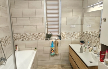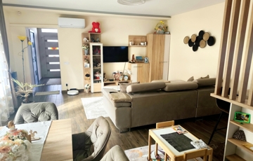 modern, fiatalos kialakítású és berendezésű családi ikerház. Három hálószoba, nappali-konyha-étkező, mosókonyha, fürdőszoba( káddal és zuhanyzóval), külön wc, egy állásos garázs és tágas, 18 nm2-es terasz található az ingatlanban. Fűtését, energiaellátását kondenzációs kazán, klíma és hőszivattyús bojler biztosítja ezért minimális rezsiköltség jellemzi a házat. A környék nagy előnye, hogy bár fekvése kiváló, csendes, átmenő forgalomtól mentes helyen található és a kis utcát csak az ott lakók használhatják. Az udvar kialakítása is nagy figyelmet kapott, rajta szalonnasütő, kert tároló lett kialakítva. További extrák: elektromos kapu, 3 fázis, riasztórendszer.