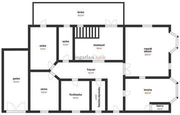 - A ház alapterülete 177,6 nm, a földszint 137,8 nm, a beépített tetőtér pedig 39,8 nm.