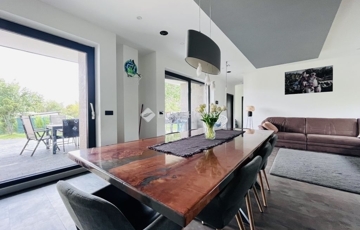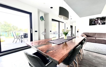 Eladó okos ház Pécsen2020-ban épült, OKOSHÁZ, prémium felszereltséggel!Pécs belvárosától mindössze 10 perc távolságra eladó egy modern, 2020-ban épült, okos funkciókkal felszerelt családi ház.Az ingatlan közel 1600 m²-es, teljesen körbekerített telken fekszik, amelyről csodálatos panoráma nyílik a környékre.A ház elosztása:4 hálószoba, melyek közül az egyik saját fürdőszobával rendelkezikTovábbá 1 különálló fürdőszoba WC-vel, egy külön WC és egy praktikus kamraÓriási amerikai konyha - nappali, amely közösségi élet központja.A konyha minőségi gépekkel van felszerelve.Műszaki jellemzők:Hőszivattyús fűtési rendszer, valamint beépített klímák gondoskodnak az otthon kényelméről.30-as Porotherm téglából épült, 20 cm-es grafit hőszigetelésselOkos szellőztető rendszer és villany- és redőnyvezérlés, amely okostelefonról működtethetőRiasztó- és kamerarendszer lett kiépítve, H tarifa és 3x25 A áramellátás rendelkezésre áll.Az házba központi vízlágyítót szereltek be.Az ingatlanhoz tartozik egy két autó beállásos garázs, valamint egy irodahelyiség.Az udvaron fedett terasz, egy hangulatos filagória. AMELYBEN kültéri konyha grillezővel és dézsával lett kialakítva.Gyerekeknek játszótér, továbbá teljes panorámás kilátás. Mecsekre.A kertet öntözőrendszer látja el.Ez a ház tökéletes választás mindazok számára, akik modern, kényelmes és okos megoldásokat keresnek egy gyönyörű helyen. Ne hagyja ki ezt a különleges lehetőséget!