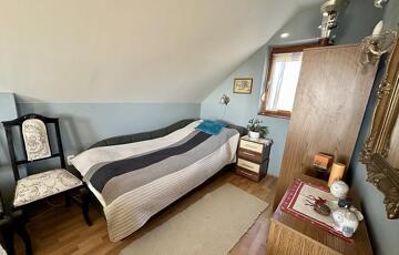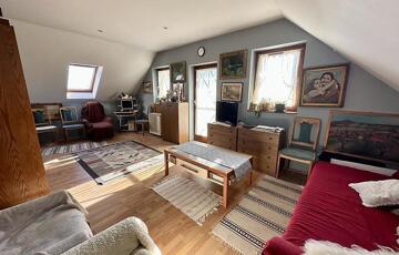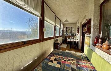 A felső szint egy hangulatos nappalit, egy hálószobát, fürdőszobát és egy erkélyt rejt, ahonnan lélegzetelállító panoráma nyílik a városra és a környező tájra. Délkeleti fekvése miatt a ház egész nap napfényben fürdik, így mindig világos és tágas tereket biztosít.