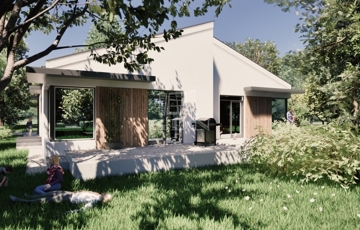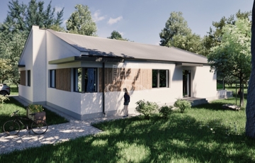 A ház 96 m²-es, világos, jó tér elosztású alaprajzzal és A+ energetikai besorolással készül.