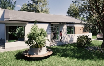 A nagy üvegfelületek és a tágas nappali-terasz kapcsolat miatt a ház minden évszakban élhető, világos és barátságos.