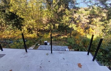 Mindkét szinten terasz tartozik az épülethez – az alsó teraszról közvetlen kijárat nyílik a
