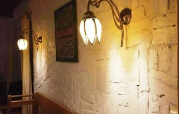A fényekről tulipánformájú falilámpák gondoskodnak, megteremtve a meghitt hangulatot.