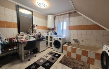 Tetőtér:Tágas fürdőszoba sminkasztallal és káddal