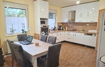 Eladó 2003-ban Porotherm 38 N+F téglából épült kétszintes családiház 25 nm-es fűtött garázzsal. A ház összesen 160 nm nettó. A földszint 85 nm és a tetőtér kb. 100/75 nm.Tetőtér beépítése 1,5 éve kezdődött folyamatban van. Készültségi szint kb 60 %-os. Fűtés, víz, villany előkészitve teljesen.Új Roto R7 műanyag ablakok a tetőtérben, Rehau kétrétegű műanyag ablakok a földszinten redőnnyel és szúnyoghálóval mindkét szinten. A földszint 2,5 éve teljesen fel lett újítva, kivéve a fürdőszobát.Külön két fürdő/WC és egy külön WC a földszinten. Grohe csaptelepekkel.Panasonic 5.3 Kw-os klíma a földszinten.Amerikai konyhás nappali minőségi Bosch beépített gépekkel.Földszinten egy 15 nm-es szoba, a tetőtérben három nagyobb.Mosókonyha/háztartási helyiség és kamraWiessmann 24 Kw-os Gázkazán Radiátoros fűtéssel, a két szint külön termosztáttal ellátott, egyedileg állítható.A melegvizet bojler éjszakai árammal vagy a gázkazán is biztosítja.25 nm-es fedett terasz, közvetlen kapcsolat a kerttelUtp hálózati csatlakozás kiépítve az egész házban.3 X 25 A ipari áram.3 + 8 m3- ciszternába bevezetve az esővíz csatorna.Parkosított, gondozott udvar örökzöldekkel.