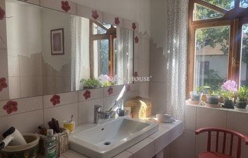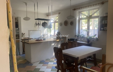 Első nagy ház, amely jelenleg két szinttel rendelkezik az alsó szint lakott. Található benne előszoba, nappali, közlekedő, lépcsőtér, gardrób/kamra, étkező-konyha, szoba, mosókonyha, toalett bidével, fürdőszoba és még egy szoba. A házhoz tartozik egy kétajtós garázs, amely a fűtési rendszereket is magában foglalja. A fűtést gázkazán, házközponti rendszer és egy hangulatos kandalló biztosítja, míg a meleg víz ellátásáról bojler gondoskodik.