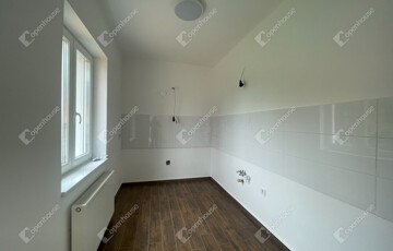 A konyha burkolata kőlap, a kiállások pedig elő vannak készítve a villanytűzhely, szagelszívó és mosogatógép számára, így az új tulajdonos saját ízlése szerint rendezheti be.